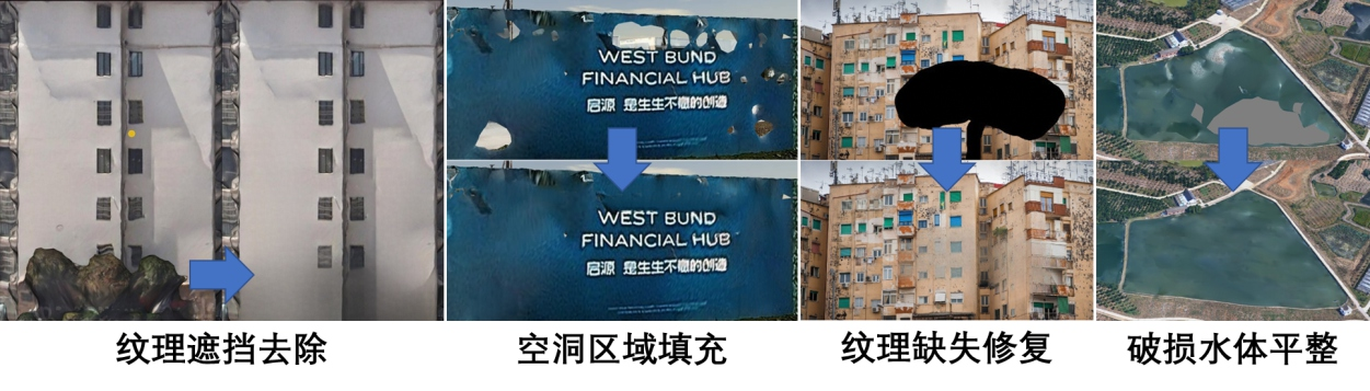 精准解决实景三维模型痛点,高效消除遮挡、悬浮物及纹理缺失等缺陷,提升模型的渲染效果与单体化精度。融合空间裁剪技术,实现半自动化的悬浮地物智能删除、水域模型压平及空洞修补,操作直观高效。